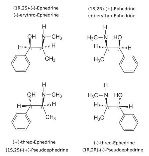 MAKE A MEME View Large Image (pseudo)ephedrine enantiomers.svg en The two pairs of enantiomers of ephedrine Top ephedrine<br> Bottom pseudoephedrine<br> IUPAC Name 2- methylamino -1-phenylpropan-1-ol The stereocenters are numbered own Wickey-nl 2009-12-15 Ephedrine ...