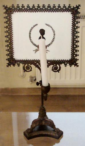 Keywords: Pseudo litofan.jpg pl Świecznik ze stojakiem na litofan tak zwany ombrant emaila own St Mons 2011 08 Cc-zero Lithophane