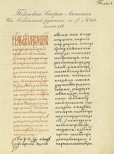 | Keywords: Pskovskaya letopis 1.jpg ru 2-я Псковская летопись Факсимильная копия пе вого листа Синодального списка дати уемого концом 15 века Вступление псковского летописца и ф агмент ачальной Летописи - лето 6362 от сотво ения ми а основание Киева A 19th century facsimile copy of the first verses of the 2nd Pskov Chronicle the w en Primary Chronicle chronist's introduction in red and the legendary foundation of Kiev by Kiy Schek and Khoriv in the year 6362 from Creation 854 AD in blue ПСРЛ Т 5 w en Complete Collection of Russian Chronicles 1841-1863 edition vol 5 The text more or less common to all East Slavic chronicles is attributed to semi-legendary w en Nestor the Chronicler; surviving copies separated from their source by many centuries were edited glossed or amended by countless anonymous scribes This page is a facsimile edition of the so-called Synode Copy of the 2nd Pskov Chronicle Modern cursive text belongs to the 19th century publishers contains bibliographical references Source chronicle handwritten in late 15th century script; not later than 1510 - Псковские летописи Т 2 1953 с 4 Printed facsimile edition which is reproduced here was published in series in 1841-1862 PD-old Pskov Chronicle Founders of Kiev |