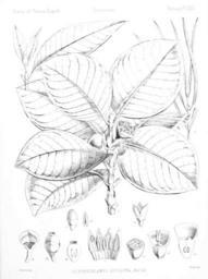 Keywords: PTRS168 0655.png Scyphochlamys revoluta <small>Balf f </small> Pyrostria revoluta <small> Balf f Razafim Lantz B Bremer</small> twig of adult plant twig of young plant twig of very young plant involucral bract flower bud fully opened flower inside of corolla and androecium stamen gynoecium with part of calyx transverse section of ovary vertical section of ovary with part of calyx single unripe fruit in involucre vertical section of unripe fruit Philosophical Transactions of the Royal Society 168 An Account of the Petrological Botanical and Zoological Collections Made in Kerguelen's Land and Rodriguez During the Transit of Venus Expedition Carried Out by Order of Her Majesty's Government in the Years 1871-1875 Plate XXV 1879 Scan by the Internet Archive Author died more than 70 years ago - public domain PD-old Philosophical Transactions - Volume 168 Pyrostria revoluta Unripe fruits |