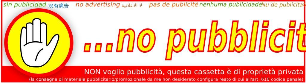 | Keywords: Pubblicità no grazie-No-adv.svg it Fascetta multilingua da esporre in vicinanza o sulla buca delle lettere per evitare di avere pubblicità nella medesima Il motivo per cui l'ho creata è che amo la natura alberi per primi Diffondi l'iniziativa e passaparola cambia il mondo anche tu in meglio ps 1 l'anteprima generata automaticamente in fase di upload quì sopra non è perfetta ma l'svg si scaricalo ed aprilo con Inkscape ps 2 se vuoi il file pronto per la stampa scegli il file in png link qui sotto ---- en Multilingue band to be exhibited on or near mailbox to avoid having the same publicity The reason why I have created is that I love nature trees first Spread the initiative and mouth changes the world too the better ps 1 preview generated automatically at the time of upload here above is not perfect but the svg is ok download it and open it with Inkscape ps 2 if you want the file ready for printing choose the file in PNG link below Own Dorylinux 2029-01-22 http //commons wikimedia org/wiki/File No-adv png No advertising signs SVG Anti logos Ecology Mailboxes in Italy Causes |