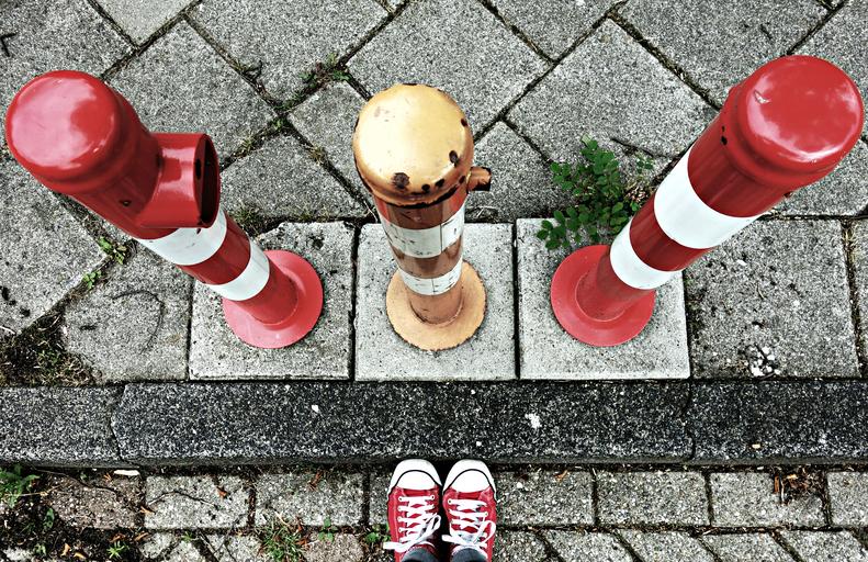Keywords: safety barrier safetybarrier traffic red-white barrier redwhitebarrier movable post movablepost hazard feet curb sidewalk public domain dedication publicdomaindedication pixabay-pexels pixabaypexels mabelamber pixabay pexels