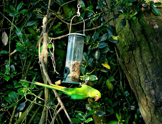 Keywords: rose-ringed parakeet roseringedparakeet parakeet parrot bird psittacula psittacidae tropical feeding amsterdam beatrix park beatrixpark holland netherlands public domain dedication publicdomaindedication mabelamber pixabay