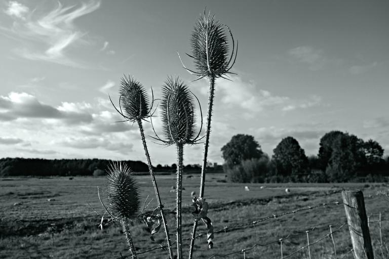 Keywords: public domain dedication publicdomaindedication pexels mabelamber thistle plant pods landscape sky skyline