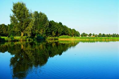 Keywords: landscape holland water lake reflection trees field rural countryside green blue sunny summer public domain dedication publicdomaindedication pixabay pexels mabelamber