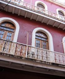 Keywords: puerto rico building porches old building red architecture railing facade arches windows french doors san juan