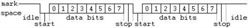 Keywords: Puerto serie Rs232.png Typical signal levels for a 8N1 RS-232 signal consisting of 1 start bit 8 data bits no parity and 1 stop bit <br/> Edit two bytes shown so the distinction between going idle and going on to the next byte can be made previous image showed going on to the next byte but did not make it clear Font is courior 10 point some formatting marks are hidden as extremely low saturation colors to assist future editors Plugwash 23 43 11 August 2006 UTC Esquema protocolo de transmisión asíncrona Transferred from http //en wikipedia org en wikipedia 2006-12-08 Plugwash at http //en wikipedia org en wikipedia Plugwash Original upload log </nowiki> red completely new version unrelated to first 2006-03-07 15 05 Lio 434×94× 2162 bytes <nowiki>Typical signal levels for a 8N1 RS-232 signal consisting of 1 start bit 8 data bits no parity and 1 stop bit </nowiki> RS-232 Data packet diagrams |