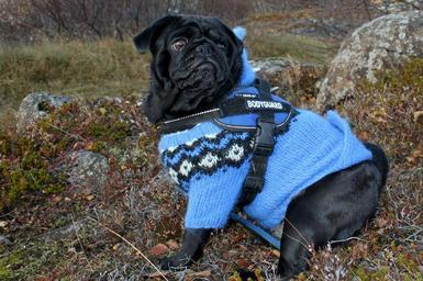 Keywords: pug dog clothing blue jacket cute canine pedigree funny portrait mammal doggy looking domestic friend animal pet puppy breed purebred small young friendship adorable