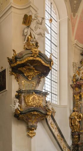 Keywords: Pulpit, Saint Peter and Paul church, Oberammergau, Bavaria, Germany.jpg fr La chaire église Saint Pierre Saint Paul Oberammergau Bavière Allemagne en The pulpit church Saint Peter Saint Paul Oberammergau Bavaria Germany 2013-10-20 own Jebulon 47 596116 11 065898 cc-zero Uploaded with UploadWizard Baroque pulpits in Bavaria St Peter und Paul Oberammergau Statues of Tuba angels Ten Commandments Quality images by Jebulon QualityImage |