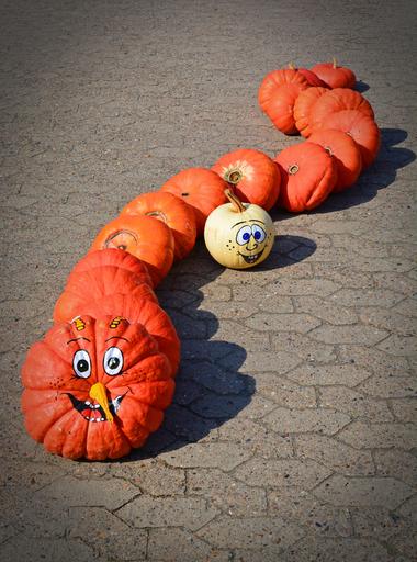 Keywords: pumpkin funny painted caterpillar harvest time sale decoration benefit from pumpkin yard cordes thanksgiving farm autumn squash gourd pumpkin soup september