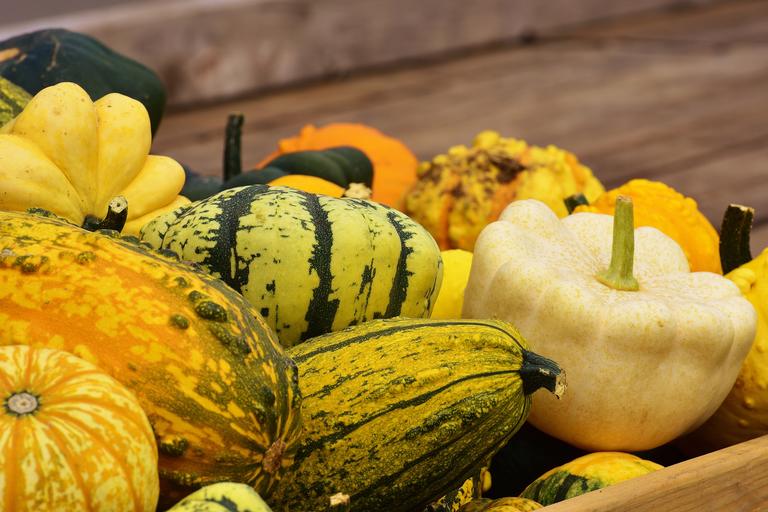 Keywords: pumpkins autumn autumn decoration harvest decorative squashes decoration orange yellow halloween garden color colorful seasonal pumpkin