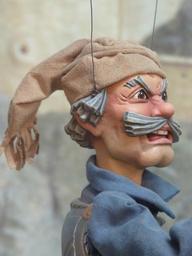 Keywords: puppet man human upset grim evil applied doll puppeteer acting