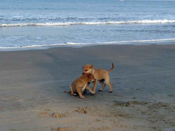 Keywords: puppy beach sand playing pet dog animal canine cute mammal domestic friend adorable pup love happiness happy breed doggy sea arabian gokarna karnataka india