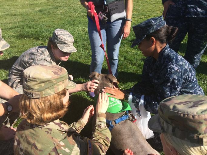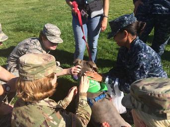 Keywords: presidio pom public_affairs publicaffairs monterey dli dliflc defense_language defenselanguage foreign_language foreignlanguage military language foreign defense community community_relations communityrelations california ca calif dod joint education school ready resilient ready_and_resilient readyandresilient resiliency 229th military_intellegence militaryintellegence intelligence foxtrot f_co fco family_readiness familyreadiness frg family readiness dog dogs mascot lingo humane humane_society humanesociety monterey_county montereycounty spca usa outdoor Foxtrot Company, 229th Military Intelligence Bn., brought the SPCA of Monterey County "Hug a Pet" team and a hot dog lunch to Defense Language Institute Foreign Language Center students and staff at the to Presidio of Monterey's Hilltop Track Nov. 9, 2016. Three dogs adopted from the shelter, two certified therapy dogs, and Pfc. Lingo - the school's mascot - spread "puppy love" to raise morale for service members, many of whom live in the barracks where they are not allowed to care for pets while completing military language training at the school. DoD photo by Catherine Caruso, Presidio of Monterey Public Affairs. Foxtrot Company, 229th Military Intelligence Bn., brought the SPCA of Monterey County "Hug a Pet" team and a hot dog lunch to Defense Language Institute Foreign Language Center students and staff at the to Presidio of Monterey's Hilltop Track Nov. 9, 2016. Three dogs adopted from the shelter, two certified therapy dogs, and Pfc. Lingo - the school's mascot - spread "puppy love" to raise morale for service members, many of whom live in the barracks where they are not allowed to care for pets while completing military language training at the school. DoD photo by Catherine Caruso, Presidio of Monterey Public Affairs.