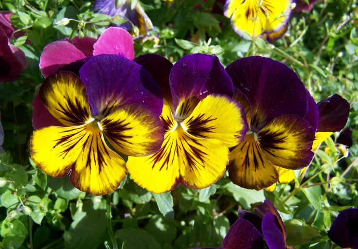 Keywords: purple and yellow pansy flower garden spring