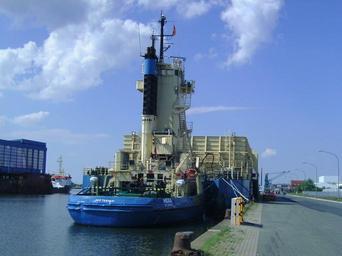Keywords: Pusher tug Mega+barge Motti.jpg en The pusher tug Mega connected with the barge without propulsion Motti de Ein Schleppverband bestehend aus dem Schubschlepper Mega und dem antriebslosen Binnenschiff Motti own Tvabutzku1234 2011-06-12 53 30 5 22 N 8 35 10 02 E region DE Cc-zero Mega tugboat 1975 Motti ship 1993 |