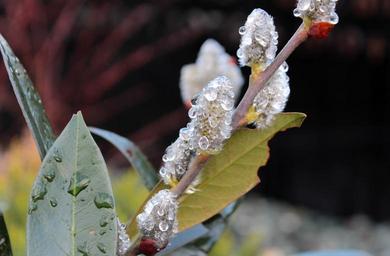 Keywords: pussy willow spring branch harbinger of spring frühlingsanfang leaves ornamental shrub raindrop