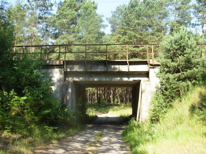 Keywords: Puszcza Bydgoska - wiadukt w rejonie Łążyna.jpg pl Puszcza Bydgoska wiadukt kolejowy nad drogą leśną w rejonie zanikłej wsi Łążyn own Pit1233 2010 Puszcza Bydgoska
