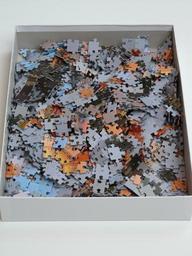 Keywords: puzzle unfinished cardboard box mess unresolved chaos pieces of the puzzle memory cards covered with play patience boredom pastime share piecing together