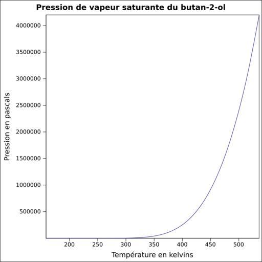 | Keywords: Pvs butan-2-ol.svg fr Pression de vapeur saturante calculée d'après <br/> Robert H Perry et Donald W Green Perry's Chemical Engineers' Handbook McGraw-Hill USA 1997 7e éd 2400 p ISBN 0-07-049841-5 p 2-50 own Epop 2010-06-24 Created with Gnumeric Vapor-Liquid equilibrium curves |
