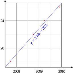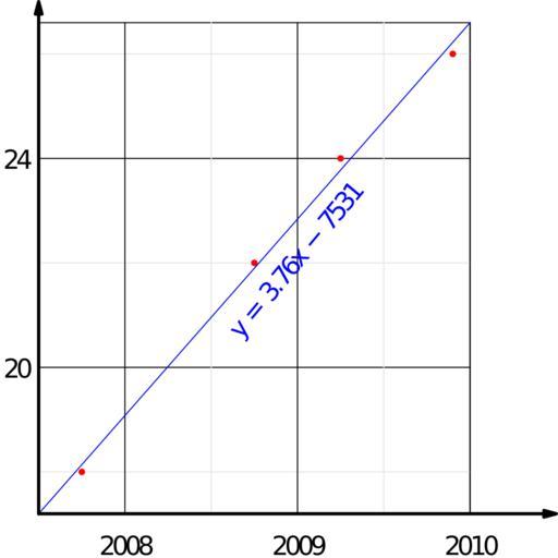 | Keywords: Pyanse.svg pyanse in Vladivostok dynamics ублях пянсе во Владивостоке 2010-03-18 own YuryKirienko Other fields <source lang CPP > import graph; size 9cm 9cm IgnoreAspect ; real t0 2007 5; real year 2007 75 2008 75 2009 25 2009 9 ; real price 18 22 24 26 ; real approx real x return 3 75982 x-7530 64; for int i 0;i<4;++i dot yeari pricei 2mm+red ; draw graph approx t0 2010 blue ; xaxis BottomTop RightTicks Step 1 step 0 5 extend true ptick lightgrey ; yaxis LeftRight RightTicks Step 4 step 2 extend true ptick lightgrey ; xequals t0 ymax 27 p linewidth 1 5pt Arrow 2mm ; yequals approx t0 xmax 2010 25 p linewidth 1 5pt Arrow 2mm ; label rotate aTan 1 1 y 3 76\ x-7531 2009 22 blue ; </source> I used Inkscape for image conversion PDF SVG Direct console conversion contains bugs both Inkscape and pstoedit so I have outline the object first - Economic charts of Russia Price trends Pyanse |