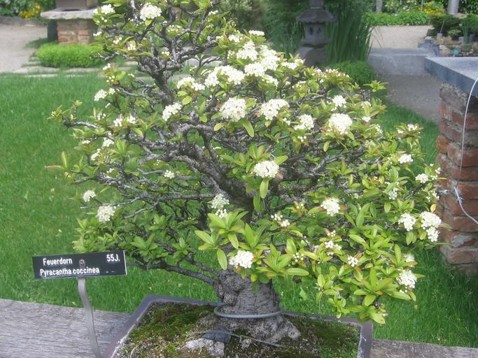 Keywords: Pyracantha coccinea.jpg autor Vladaig my photo 2006-05-20 own assumed Vladaig Alpengarten im Belvederegarten Bonsai in Austria Pyracantha bonsai
