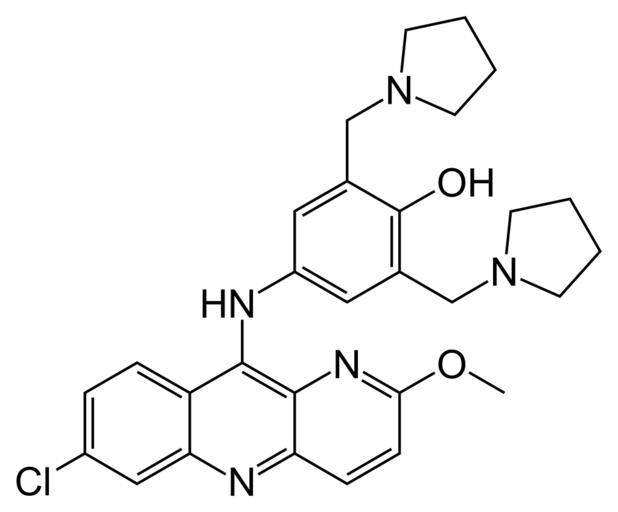 Keywords: Pyronaridine.svg validSVG Skeletal formula of pyronaridine Created using http //www acdlabs com/download/chemsk html ACD/ChemSketch 10 0 Inkscape and vim Own work after cite journal World Health Organization International Nonproprietary Names for Pharmaceutical Substances INN Recommended INN List 59 WHO Drug Information 22 1 62 2008 http //whqlibdoc who int/druginfo/INN_2008_list59 pdf 2009-08-16 Fvasconcellos Antimalarial agents