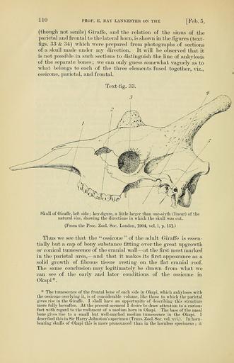| Keywords: PZSL1907Page110.png Giraffa camelopardalis Giraffa camelopardalis <small> Linnaeus 1758 </small> en Skull of adult giraffe left lateral view 1-5 lines indicating cuts made in preparation Proceedings of the Zoological Society of London http //archive org/details/proceedingsofzoo19071446zool vol 1907 issue 1 http //archive org/stream/proceedingsofzoo19071446zool page/110/mode/1up page 110 1907 E Ray Lankester text From the Proc Zool Soc London 1904 vol i p 151 PD-old <gallery> file PZSL1907Page111 png Section made at line 4 looking forward </gallery> PZSL 1907-1 Giraffa camelopardalis skulls |