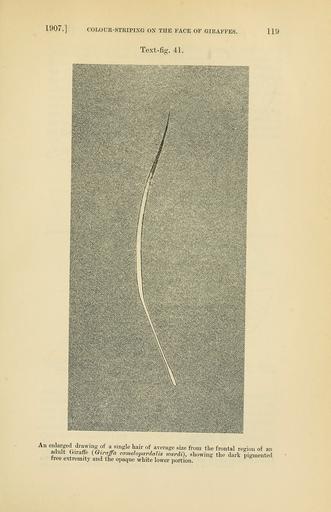 | Keywords: PZSL1907Page119.png Giraffa camelopardalis wardi Giraffa camelopardalis giraffa <small>von Schreber 1784</small> en Hair from forehead of a South African Giraffe Proceedings of the Zoological Society of London http //archive org/details/proceedingsofzoo19071446zool vol 1907 issue 1 http //archive org/stream/proceedingsofzoo19071446zool page/119/mode/1up page 119 1907 E Ray Lankester text PD-old PZSL 1907-1 Giraffa camelopardalis anatomy Animal hair Giraffa camelopardalis giraffa | ||||
