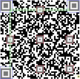 | Keywords: QR Code with desc.svg Budowa kodu kreskowego QR Code<br/>Obszar zaznaczony niebieskÄ… ramkÄ… “ wzór wyszukiwania 3xwzór pozycji oraz separatory<br/>Obszar zaznaczony zielonÄ… ramkÄ… “ wzór synchronizacji 2x <br/>Obszar zaznaczony czerwonÄ… ramkÄ… “ wzory osiowe<br/>Obszar zaznaczony żółtÄ… ramkÄ… “ pojedynczy moduÅ‚<br/>UWAGA Grafika nie przedstawia obowiÄ…zkowego marginesu o szerokoÅ›ci 4 modułów z każdej strony kodu <br/> Own 2007-03 Maly LOLek PD QR Code Diagrams | ||||