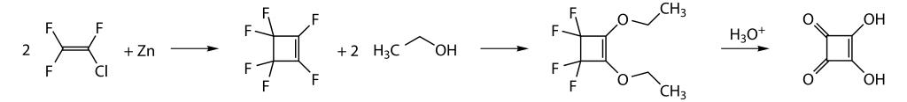 Keywords: Quadratsäure Darstellung.svg validSVG de Darstellung von Quadratsäure; en manufacture of squaric acid own 2006-12-07 NEUROtiker incorrect PNG version Organic syntheses Squaric acid