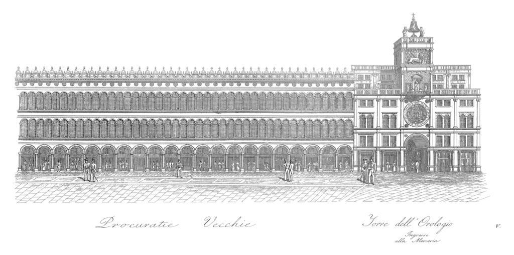 | Keywords: Quadri-Moretti, Piazza San Marco (1831), 05.jpg 04 V 06 Procuratie Vecchie LangSwitch Eastern part of the Procuratie Vecchie at the north side of the Piazza San Marco St Mark ™s Square At the right the Torre dell ™orologio St Mark ™s Clocktower Östlicher Teil der Procuratie Vecchie an der Nordseite der Piazza San Marco Markusplatz Rechts die Torre dell ™orologio Uhrturm PD-old-100-1923 Procuratie Vecchie Venice Quadri-Moretti B right Piazza San Marco Venice - Clock tower | ||||