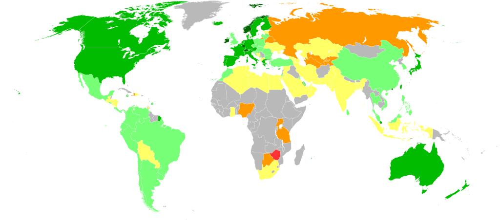 | Keywords: Quality-of-life 2005.svg The Economist Intelligence Unit ™s quality-of-life index 2005 006600 8 000 - 8 999 00bb00 7 201 - 7 999 77ff77 6 000 - 7 200 ffff66 5 000 - 5 999 ff9900 4 000 - 4 999 ff3333 3 000 - 3 999 b9b9b9 No Data Based on Image BlankMap-World6 compact svg Country data acquired from en Quality-of-life index 2008-04-04 Jhattara SVG maps of the world Quality |