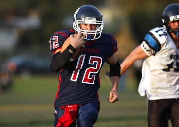 Keywords: quarterback runner american football football game sport competition game running high school champion teenager challenge determination competitive action football canada team leader canadian ball carrier