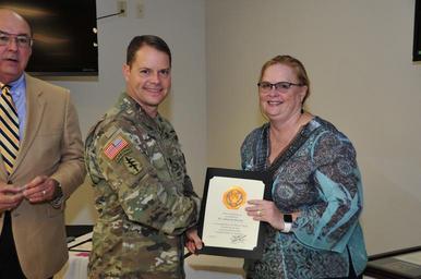 | Keywords: fort a. p. hill fortaphill awards army awards armyawards employees governmernt employees governmerntemployees army employees armyemployees people groupshot indoor LTC Andrew Q. Jordan, commander, U.S. Army Garrison, Fort A.P. Hill, and his leadership team hosted the installation's quarterly awards ceremony, Oct. 18. The installation workforce gathered at the Training Support Center and joined in recognizing some 50 employees for time in service, meritorious achievement and dedication to the installation's mission. Hooah! LTC Andrew Q. Jordan, commander, U.S. Army Garrison, Fort A.P. Hill, and his leadership team hosted the installation's quarterly awards ceremony, Oct. 18. The installation workforce gathered at the Training Support Center and joined in recognizing some 50 employees for time in service, meritorious achievement and dedication to the installation's mission. Hooah! |