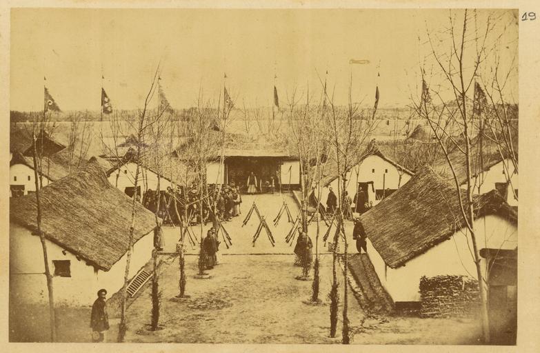 Keywords: Quarters for Chinese Troops. Gansu, China, 1875 WDL1911.png Artwork ru Боя ский Адольф- иколай Э азмович fr Boiarskii Adolf-Nikolay Erazmovich en Boiarskii Adolf-Nikolay Erazmovich zh 阿道夫 伊拉莫维奇 鲍 尔斯基 pt Boiarskii Adolf-Nikolay Erazmovich ar أدولف-نيكولاي إرازموفيتش بويارسكي es Boiarskii Adolf-Nikolay Erazmovich ru Каза мы китайских войск П овинция Ганьсу Китай 1875 г fr Quartiers des troupes chinoises Province du Gansu en Chine 1875 en Quarters for Chinese Troops Gansu China 1875 zh 中国军队的军营 中国甘肃,1875 年 pt Quartéis das tropas chinesas Gansu China 1875 ar مقر للقوات الصينية غانسو، الصين، 1875 ru В 1874 1875 гг оссийское п авительство нап авило в Китай учено-то говую экспедицию с целью поиска новых сухопутных ма ш утов к китайскому ынку оценок возможностей для более активной то говли и для асположений консульств и фаб ик а также сбо а инфо мации о Дунганском восстании бушевавшем в то в емя в западных айонах Китая Экспедиция уководителем кото ой был полковник Гене ального штаба Ю  А  Сосновский состояла из девяти человек капитана атусовского  топог афа докто а Павла Яковлевича Пясецкого  научного сот удника пе еводчиков с усского и китайского языков т оих казаков и фотог афа экспедиции Адольфа Э азмовича Боя ского Экспедиция отп авилась из Санкт-Пете бу га в Шанхай че ез Улан-Бато онголия Пекин и Тяньцзинь и затем последовала по ма ш уту вдоль еки Янцзы по Великому шелковому пути п оходя че ез оазис Хами к озе у Зайсан об атно в Россию Боя ский сделал около 200 снимков кото ые легли в основу уникальных мате иалов для изучения Китая того в емени Большая часть фотог афий вошла в этот альбом кото ый позже стал частью коллекции Те езы К истины а ии соб анной импе ато ом Б азилии Пед у II и пе еданной им ациональной библиотеке Б азилии <br>Флаги; К епости и фо тификационные соо ужения; Память ми а; Солдаты; О ужие fr En 1874-1875 le gouvernement russe organisa une mission commerciale et de recherche en Chine Cette mission avait pour objectif de trouver de nouvelles routes terrestres vers le marché chinois d'étudier les perspectives d'une expansion commerciale de rechercher des sites pour l'installation de consulats et d'usines et de recueillir des informations sur la révolte de Dungan qui faisait alors rage dans les provinces de la Chine occidentale Composée de 9 hommes et dirigée par le lieutenant-colonel Iulian A Sosnovskii de l'état-major général de l'armée cette mission comprenait également un topographe le capitaine Matusovskii un responsable scientifique le Dr Pavel Iakovlevich Piasetskii des interprètes chinois et russes trois sous-officiers cosaques et le photographe de la mission Adolf Erazmovich Boiarskii La mission se déroula de Saint-Pétersbourg à Shanghai en passant par Oulan-Bator Mongolie Pékin et Tianjin Elle longea ensuite le fleuve Yangtsé et suivit la grande Route de la soie à travers l'oasis Hami et jusqu'au lac Zaysan de retour en Russie Adolf Erazmovich Boiarskii prit quelque 200 photographies ce qui constitue une source unique pour l'étude de la Chine de cette période La plupart des photographies prises durant cette mission apparaissent dans cet album lequel rejoignit par la suite la collection Thereza Christina Maria rassemblée par l'empereur Pierre II du Brésil qui en fit don à la Bibliothèque nationale du Brésil <br>Drapeaux; Forts et fortifications; Mémoire du monde; Soldats; Armes en In 1874-75 the Russian government sent a research and trading mission to China to seek out new overland routes to the Chinese market report on prospects for increased commerce and locations for consulates and factories and gather information about the Dungan Revolt then raging in parts of western China Led by Lieutenant Colonel Iulian A Sosnovskii of the army General Staff the nine-man mission included a topographer Captain Matusovskii; a scientific officer Dr Pavel Iakovlevich Piasetskii; Chinese and Russian interpreters; three non-commissioned Cossack soldiers; and the mission photographer Adolf Erazmovich Boiarskii The mission proceeded from Saint Petersburg to Shanghai via Ulan Bator Mongolia Beijing and Tianjin and then followed a route along the Yangtze River along the Great Silk Road through the Hami oasis to Lake Zaysan back to Russia Boiarskii took some 200 photographs which constitute a unique resource for the study of China in this period Most of the photographs are included in this album which later became part of the Thereza Christina Maria Collection assembled by Emperor Pedro II of Brazil and given by him to the National Library of Brazil <br>Flags; Forts and fortifications; Memory of the World; Soldiers; Weapons zh 1874-1875 年,俄罗斯政 向中国派出 支科学和贸易 察团, 察经由陆路进军中国市 的新 径,调查贸易的增长前景, 寻找合 的 方建立领事馆和工