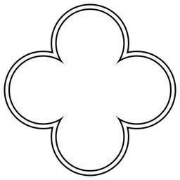 | Keywords: Quatrefoil-Architectural-alternate.svg One form of an architectural/symbolic quatrefoil made of four overlapping circles In the version of the quatrefoil shown the circles are pulled almost as far apart as they can be and still have the circumferences of the innermost circular white areas intersect For different versions see Image Quatrefoil-Architectural png and Image Quatrefoil-Architectural-Square png The quatrefoil is the fourfold version of an architectural trefoil see Image Trefoil-Architectural svg Generated by means of the following PostScript code change 56 to 57 1614716 to see the version of the quatrefoil where adjacent innermost circular white areas are exactly tangent which results in a less aesthetic version of the symbol <pre> 306 396 translate 8 dup scale /x 56 def 57 1614716 /a c 0 360 arc fill def /b -138 x sub 0 a 138 x add 0 a 0 138 x add a 0 -138 x sub a def /c 163 def b 1 setgray /c 157 def b 0 setgray /c 144 def b 1 setgray /c 138 def b 0 0 a showpage EOF</pre> v fl AnonMoos Quatrefoils |
