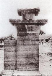 Keywords: Que, or pillar gate, at the Wu Family Shrine.jpg A que or pillar gate monumental tower standing in front of the Wu Family Shrines built in Shandong province China during the 2nd century AD This photo was taken at the turn of the 20th century by Édouard Chavannes died 1918 1 This photo was originally published in Mission archéologique dans la Chine septentrionale by Édouard Chavannes Paris E Leroux 1909- Series Publications de l'École française d'Éxtrême-Orient vol 13 pt one 2 Photo scanned from Pleasure Tower Model in Recarving China's Past New Haven and London Yale University Press 2005 by Nancy N Steinhardt edited by Naomi Noble Richard image on page 279 courtesy of Visual Resources Collection University of Pennsylvania Photo taken c 1900 Édouard Chavannes died 1918 PD-old-70-1923 Eastern Han Dynasty Art of the Han Dynasty Wu family shrines Architecture of China Édouard Chavannes 1900 in China