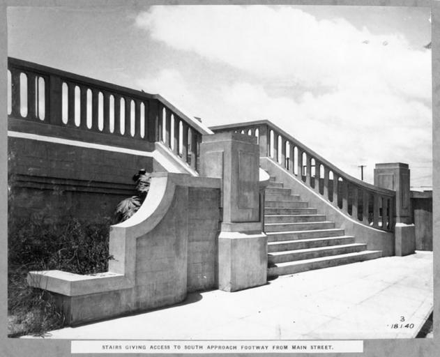 Keywords: Queensland State Archives 4034 Stairs giving access to south approach footway from Main Street Kangaroo Point Brisbane 18 January 1940.png en Stairs giving access to south approach footway from Main Street Kangaroo Point Brisbane Story Bridge construction 1940-01-18 http //www archivessearch qld gov au/Image/DigitalImageDetails aspx ImageId 4034 Preferred citation Queensland State Archives Digital Image ID 4034 ID label 1249573 http //www archivessearch qld gov au/Search/AgencyDetails aspx AgencyID 1995 Lands Department Survey Office Cartographic Branch Photographic Section en Copyright expired Information field Decade 1940-1949 Information field Place en Brisbane City Information field Material Type en Photographic material Information field Type en Image PD-Australia QSA media uploaded by User 99of9 Photographic material from the Queensland State Archives 1940 in Queensland Story Bridge construction Main Street Kangaroo Point Stairs |