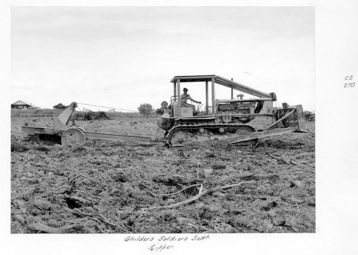 | Keywords: Queensland State Archives 4303 Ripper in action at the Childers Soldiers Settlement 1950.png en Ripper in action at the Childers Soldiers Settlement Item 435605 Register to the photographs makes reference to the Lands Department 1950 http //www archivessearch qld gov au/Image/DigitalImageDetails aspx ImageId 4303 Preferred citation Queensland State Archives Digital Image ID 4303 ID label 1264922 http //www archivessearch qld gov au/Search/AgencyDetails aspx AgencyID 1995 Lands Department Survey Office Cartographic Branch Photographic Section en Copyright expired Information field Decade 1950-1959 Information field Place en Bundaberg Region Information field Keywords en Agricultural machinery Soldier settlements Information field Material Type en Photographic material Information field Type en Image PD-Australia QSA media uploaded by User 99of9 Photographic material from the Queensland State Archives 1950 in Queensland Childers soldier settlement Bulldozers in Australia Land clearing in Queensland |