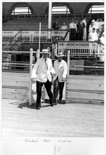 | Keywords: Queensland State Archives 6263 Cricket Test Umpires October 1958.png en Cricket Test Umpires 1958-10 http //www archivessearch qld gov au/Image/DigitalImageDetails aspx ImageId 6263 Preferred citation Queensland State Archives Digital Image ID 6263 ID label 1448905 http //www archivessearch qld gov au/Search/AgencyDetails aspx AgencyID 1995 Lands Department Survey Office Cartographic Branch Photographic Section en Copyright expired Information field Decade 1950-1959 Information field Place en Brisbane City Information field Keywords en Sports Information field Material Type en Photographic material Information field Type en Image PD-Australia QSA media uploaded by User 99of9 Photographic material from the Queensland State Archives 1958 in Queensland Queensland Lands Department John McDonald Stand Cricket umpires |