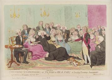 Keywords: Questions and commands; or, the mistaken road to He-r-f-rd; a Sunday evenings amusement by James Gillray.jpg Questions and commands; or the mistaken road to He-r-f-rd; a Sunday evenings amusement by James Gillray died 1815 published 1788 See source website for additional information Men and women playing parlor game Judge with his head under the edge of a woman's skirts kissing her foot This set of images was gathered by User Dcoetzee from the National Portrait Gallery London website using a special tool All images in this batch have been confirmed as author died before 1939 according to the official death date listed by the NPG D12372 1788 James Gillray died 1815 PD-old-100 National Portrait Gallery London James Gillray Gender-role reversals or women in power |