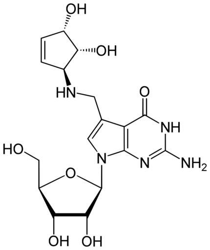 | Keywords: Queuosine - Queuosin.svg Queuosine is a modified nucleoside that is present in certain tRNAs in bacteria and eukaryotes Queuosin ist ein modifiziertes Nukleosid dass in einigen tRNAs von Bakterien und Eukaryoten vorkommt own 2008-04-11 Yikrazuul Nucleosides |