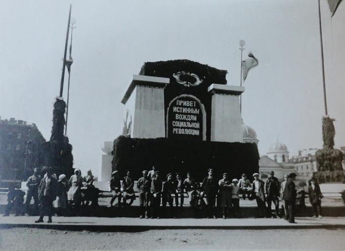 | Keywords: 20th century 20thcentury soviet union sovietunion boris souvarine borissouvarine saint-petersburg saintpetersburg russian revolution russianrevolution petrograd decembrist square decembristsquare workers russia revolt square revoltsquare outdoor Boris Souvarine Papers - Soviet Russia Photos graduateinstitute.ch/home/research/library/archives/boris... Notes: The back of this picture holds the mention (both in Russian and French): "At Revolt Square". The square was formerly known as "Peter's Square", after the Bronze Horseman monument erected by Catherine the Great in 1782, representing Peter the Great. In 1925, the place was renamed "Decembrist Square", to mark the centenary of the Decembrist revolt against the imperial power. It is now known as "Senate Square". One can read on the monument: "Greetings to the real Leader of the Social Revolution". Saint Isaac's Cathedral appears in the background. The document is a reproduction of a photo. The other side of the square is also photographed (see photo entitled "Back of Revolt Square...". Unknown photographer. Description: 1 photograph. Black and white ; 12 x 16.5 cm. Boris Souvarine Papers - Soviet Russia Photos graduateinstitute.ch/home/research/library/archives/boris... Notes: The back of this picture holds the mention (both in Russian and French): "At Revolt Square". The square was formerly known as "Peter's Square", after the Bronze Horseman monument erected by Catherine the Great in 1782, representing Peter the Great. In 1925, the place was renamed "Decembrist Square", to mark the centenary of the Decembrist revolt against the imperial power. It is now known as "Senate Square". One can read on the monument: "Greetings to the real Leader of the Social Revolution". Saint Isaac's Cathedral appears in the background. The document is a reproduction of a photo. The other side of the square is also photographed (see photo entitled "Back of Revolt Square...". Unknown photographer. Description: 1 photograph. Black and white ; 12 x 16.5 cm. |