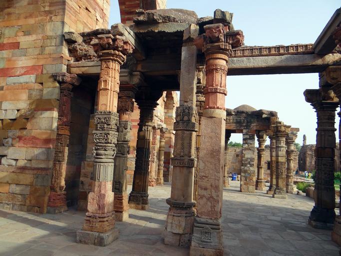 Keywords: qutab complex pillars carved stonework red sandstone arch islamic monument unesco world heritage site delhi monument heritage india