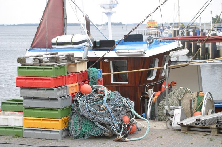 Keywords: rügen island fishing port fishing boats fishing networks boxes sea
