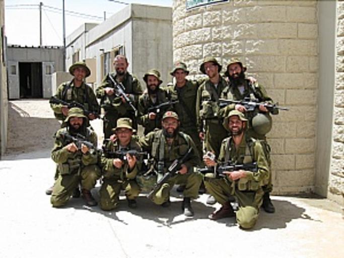 Keywords: Rabanim004.jpg he צוערי בקורס רבני צבאיי באימון וחמה בשטח בנוי own Alonnardi 2009 free use Israel Defense Forces rabbis