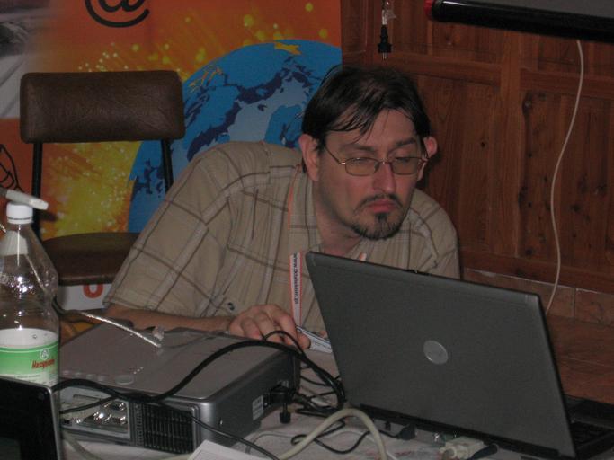 Keywords: Rabka2008-byJulo-3500.JPG Poland Wikimedia Meetup in Rabka 22-25 05 2008 Zlot Wikimedia Polska - Rabka 22-25 05 2008<br>Kocio przy komputerze own 22-25 5 2008 Julo Julo 2008 Wikimedia Polska conference in Rabka Kocio