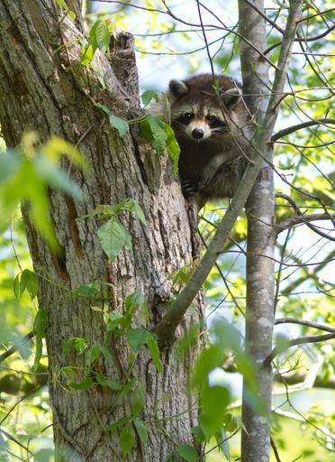 Keywords: raccoon climbing tree cute wildlife nature outdoors mask tail fur