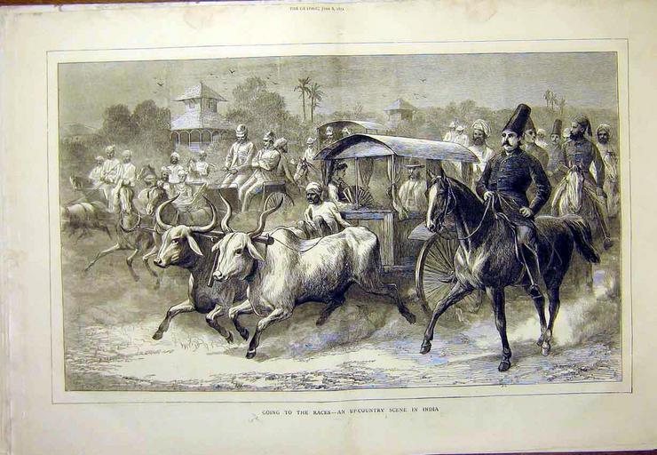 Keywords: Races1872.jpg en Views from the ILLUSTRATED LONDON NEWS and The Graphic some with later hand coloring all from ebay auctions Loodhianah on the Sutlej 1846 Sikh Soldiers 1846 The British Museum 1851 An Indian Railway Station 1854 shown above Banyan Tree 1856 Travelers overtaken by the inundation of a flash flood 1856 Hindoo thugs and poisoners 1857 Snake charmers in India 1857 Ruins Brahmunabad Sind 1857 Hindoostanee Dhoolie used by Hospitals and in the Field 1857 The Chowk or Square before the Palace of the Rajah Indore Oct 3 1857 with hand coloring Fort of Allahabad 1857 Temple of Juggernaut 1857 The Mutiny in India defenses of Delhi 1857 The recapture of Allahabad 1857 The Red Fort after its recapture January 1858 Dawk Wallahs of Bengal 1858 An Indian Railway Station Defended and The Mhow Fort 1858 Fireworks at Moorshedabad from a Native Drawing 1858 The Hoolie Festival 1858 The Hindoo Money-Changer 1859 The Keranchie-Kidrapore Omnibus 1859 Calisthenic exercises in India 1860 An Elephant Taking Care of Children 1863 Peruvian bark tree plantation in the Neilgherry Hills 1864 Milk-women in the Camp 1864 Performing Goat 1864 Shoeing a Bullock in India 1864 Effects of the Cyclone at Calcutta 1864 An Indian Harlequin Playing the Tiger 1864 The Social Science Congress at Sheffield Sir Manockjee Cursetjee delivering his essay on education in India 1865 Tumblers and Jugglers 1872 Eclipse expedition to India 1872 Scene of the gunpowder explosion at Agra Fort 1872 Going to the Races an Upcountry Scene in India from The Graphic 1872 Sir Jamsetjee Jeejeebhoy's School of Art at Bombay from The Graphic 1872 An Indian Portrait Painter from the Illustrated Times 1872 Indian Modes of Irrigation image 1 c 1874 Indian Modes of Irrigation image 2 c 1874 An Elephant Auction in India 1875 A Serpent Charmer 1875 A Rhinoceros Fight at Baroda 1875 The Prince of Wales's voyage to India taking ice on board HMS Serapis 1875 A Rajah goes in state to a reception by the Prince of Wales at Bombay 1875 Operatic company en route to India 1875 The Feast of Lanterns at Bombay 1875 Loading bullock carts 1875 In the Synagogue of the White Jews Cochin Feb 5 1876 with hand coloring Bruising Rice for Sweetmeats Feb 5 1876 with hand coloring A Fakeer 1876 A Strolling Minstrel at Madras Playing the Tingadee 1876 A Hindoo Mendicant Pilgrim 1876 On Board Steamer Indus taking soundings 1876 On the Way to India Southhampton 1876 The Royal Visit to India Arrival of the Prince of Wales at Agra 1876 The Perahara Festival at Kandy Ceylon before the Prince of Wales 1876 The Prince of Wales Visiting the Monkey Temple Benares 1876 Royal Visit Sans Souci Bombay 1876 Bombay The Banquet to Two Thousand Sailors of the Fleet 1876 Entry of the Prince of Wales into a City of India 1876 Triumphal Arch on the Alexandra Railway Bridge at Wuzeerabad 1876 A Tiger Hunting Party 1876 Padding a Tiger 1876 Crossing a Nullah in the Terai 1876 The Prince of Wales on the Road to the Temple of Parbuttee near Poonah 1876 The Modern Juggernauth 1877 Wood Carver Simla 1877 The Jowaki Campaign North-West Frontier of India 1877 Paris Exhibition Pavilion of the Prince of Wales's Indian Collection 1878 The War with the Jowakis North-Western India 1878 An Indian Night Watchman 1878 An Unwelcome Visitor-- A Frequent Incident of Anglo-Indian Life from The Graphic 1879 Sketches in Southern India shooting alligators on the way home from a picnic from The Graphic 1879 Ten Days' Sporting Trip in the Jungle of India from The Graphic 1880 Shooting the Ibex 1880 Bringing the Head of the Ibex Home 1880 A Dust Storm in Camp 1880 Deportation of Sidars into India Halt for Prayer Sunset 1880 Preparing for a Race Meeting 1880 A Hindoo Shrine at Allahabad 1881 Indigo Cultivation Tirhut Bengal from The Graphic 1881 Twenty-four Hours in the Life of a Subaltern from The Graphic 1882 Field Firing at Peshawur from The Graphic 1882 Small Sport in India from The Graphic 1882 Quail Snaring with Trained Cattle 1883 To India on P O Steamer Cathay 1883 Ilbert Dynamite Conspiracy Trial 1883 Tea Cultivation in India -- a Tea Garden on the Borders of Nepaul from The Graphic 1883 Pig Sticking in India from The Graphic 1883 Christmas in Southern India from The Graphic 1884 Lime Cutting in India 1885 India Regimental Gymkhana Races 1885 Fancy Dress Ball at Dharmshala Punjab 1885 Scindia's Fortress of Gwalior Central India 1885 India Days Ravine Deer Stalking from The Graphic 1885 Mandalay Capital of the Kingdom of Burmah 1885 An Elephant Battery in Action near Mingyan Burma from The Graphic 1886 The Fighting in Upper Burma from The Graphic 1886 The Rebellion in Burma from The Graphic 1886 A Pearl Fishery in Ceylon from The Graphic 1887 Indigo Manufacture in India from The Graphic 1887 A Ceylon Surf Boat from The Graphic 1887 The Burma Campaign from The Graphic 1887 Transport of Trees in the Forests of the Himalayas 1888 Young Civilian's First Year in India 1888 Hyena-Spearing in India 1889 Tiger-Shooting in India 1889 Bear-shooting Kashmir 1889 Hunting with cheetas at Dhar 1889 A Day's Hawking at Dera Ghazi Khan Punjaub from The Graphic 1889 The Great Hall at 'The Strangers' Home' West India Dock Road from The Graphic 1889 The Yule Log in India--Bringing in the Ice from The Graphic 1889 Native Cavalry Tent-Pegging in Sections 1890 Mompunga a Lushai chief and Mr Murray Political Agent taking the oath of friendship 1890 The Lushai Expedition 1890 Highway Robber -- Indian Monkey 1891 The Morning Ride 1891 Ratnagiri Bombay 1891 Praying for Rain in Northern India A Hindoo Fakir Invoking the Gods 1891 The Sleepy Punkah-walla from The Graphic 1891 Unwelcome Visitors Crows at a Tennis Party in India from The Graphic 1891 The Locust Plague in Northern India from The Graphic 1891 The fighting near Gilgit on the Northwestern Frontier from The Graphic 1891 The Cavalry Manoeuvres of Attock Native Cavalry Stopping a Scout from The Graphic 1891 Pig Sticking on the Churs of the Brahmapootra-- Surprised b
